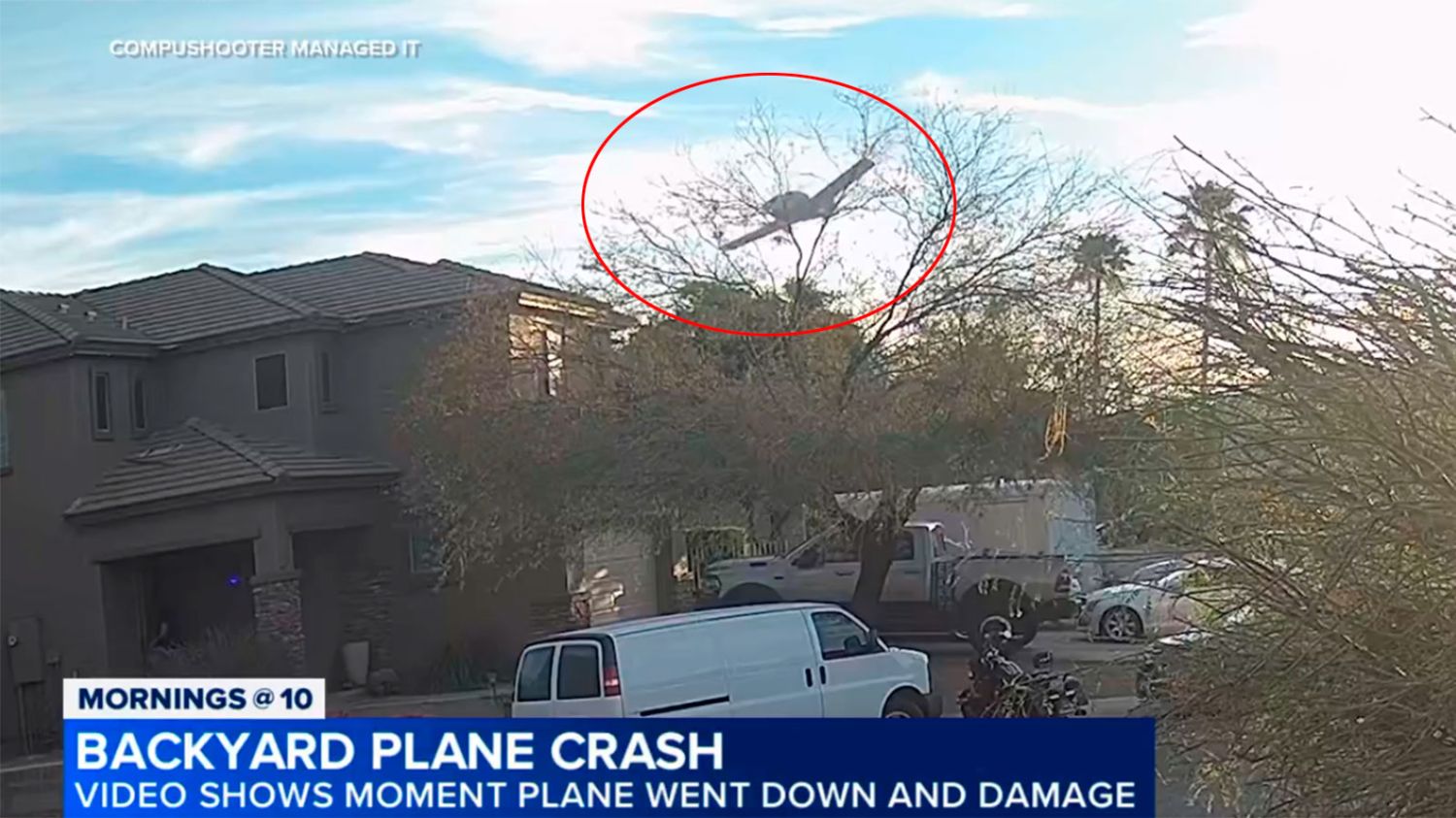 El avión dañó levemente dos casas y terminó en el patio trasero de una de ellas.