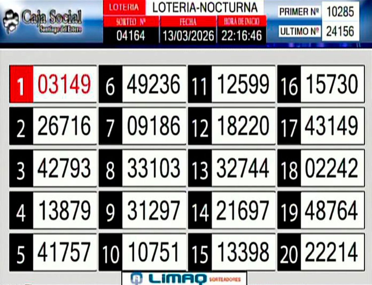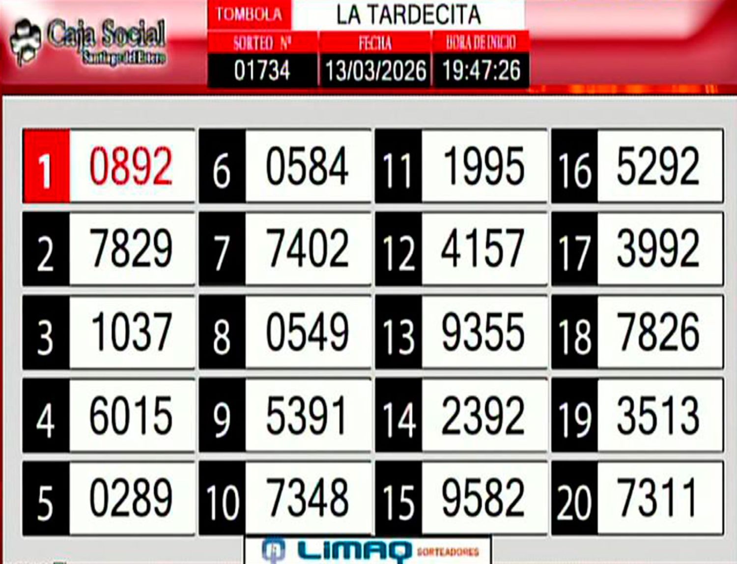 Este viernes 13 de marzo, como todos los días, se llevó a cabo un nuevo sorteo de la Tómbola Santiagueña.