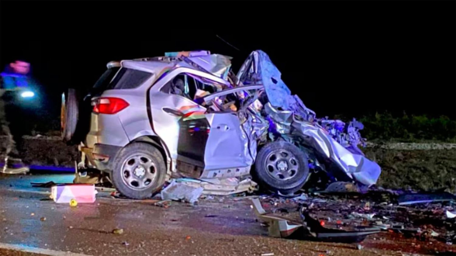 El impacto ocurrió a unos 42 kilómetros al sur de Garayalde, en un tramo comprendido entre Malaspina y Estancia La Jorgelina. Por motivos que aún se investigan, una Ford EcoSport en la que viajaban cuatro personas colisionó de frente contra una Toyota Hilux ocupada por dos personas. La violencia del choque fue tal que ambos vehículos quedaron completamente destruidos.