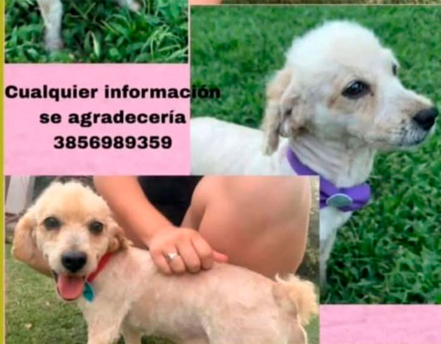 Una familia del barrio Bosco III se encuentra atravesando momentos de angustia tras la desaparición de su mascota, un caniche llamado “Tony”, que se extravió el pasado domingo en horas de la mañana. HACÉ CLICK AQUÍ PARA UNIRTE AL CANAL DE WHATSAPP DE DIARIO PANORAMA Y ESTAR SIEMPRE INFORMADO Según indicaron sus dueños, el pequeño perro —de pelaje blanco y canela— fue visto por última vez en inmediaciones de la calle 436, desde donde se perdió su rastro. Ante la falta de novedades, los propietarios decidieron ofrecer una recompensa de 70 mil pesos para quienes puedan aportar información fehaciente que permita dar con su paradero. Quienes lo hayan visto o tengan algún dato sobre su ubicación, pueden comunicarse de inmediato al número 3856-989359. Se solicita la colaboración de vecinos para lograr que Tony regrese a su hogar.