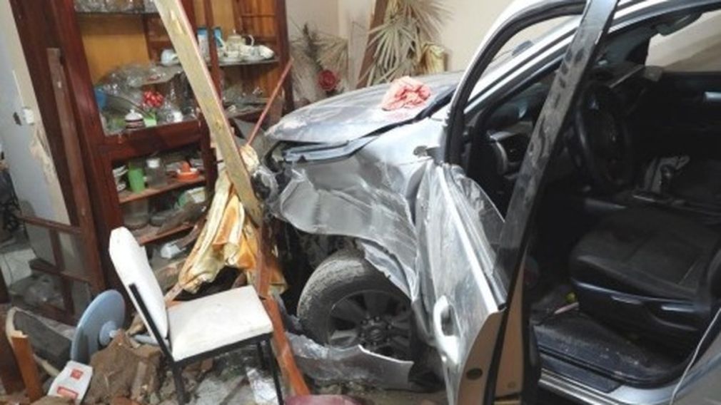 Acto seguido, el hombre viró bruscamente y aceleró su camioneta, impactando frontalmente contra un inmueble. La violencia de la colisión fue tal que media camioneta ingresó en la propiedad, lo que podría haber causado daños significativos a terceros.