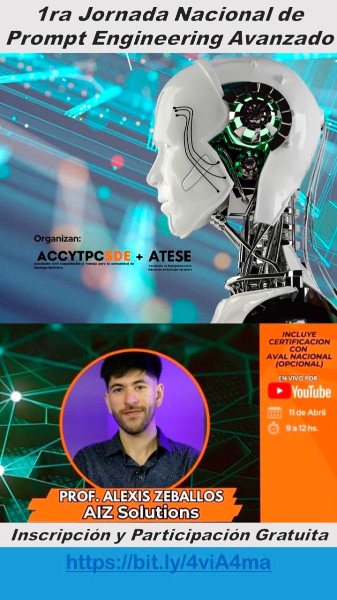 Desde Santiago del Estero se desarrollará la Primera Jornada Nacional de Prompt Engineering Avanzado, bajo la consigna “De prompts simples a sistemas de instrucción profesionales”, el día sábado 11 de abril de 9 a 12.30, en formato virtual y gratuito.