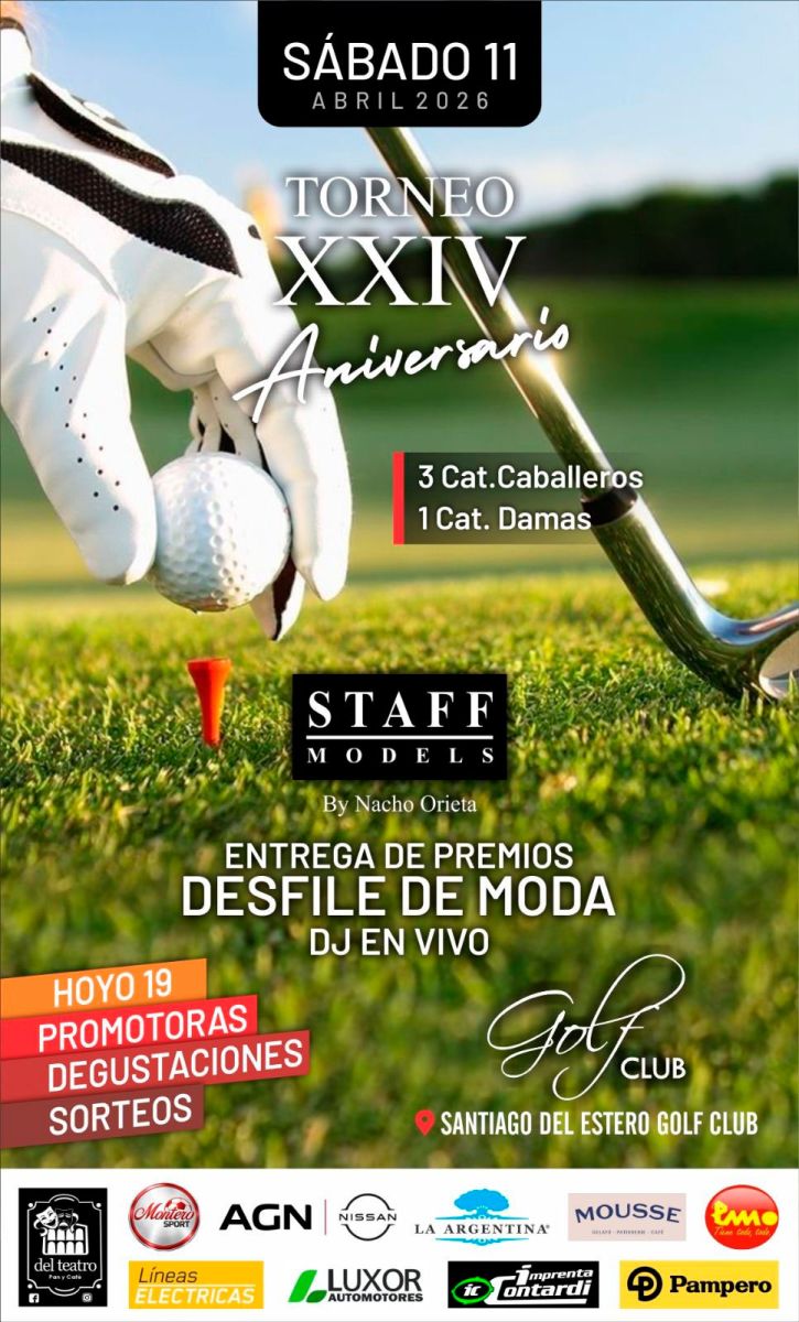 En el marco de los festejos por sus 24 años de trayectoria, la agencia Staff Models, dirigida por el empresario de la moda Nacho Orieta, organizará este sábado 11 de abril un importante torneo de golf en el Santiago del Estero Golf Club.