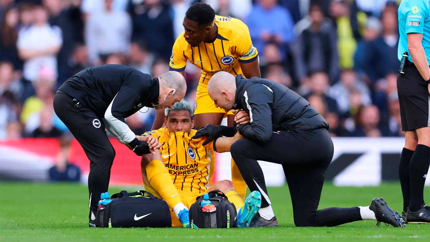 El protagonista es Diego Gómez, quien no pudo completar el partido entre Tottenham y Brighton & Hove Albion, que terminó 2-2, luego de sufrir una fuerte caída que le provocó dolor en la rodilla izquierda.