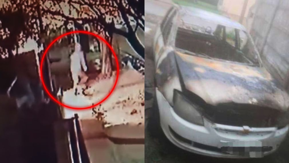 En las imágenes se aprecia al autor del hecho cuando llega en una moto y con un bidón se acerca al rodado. En cuestión de segundos, el auto es consumido por las llamas y personal policial y de bomberos intervino para que la situación no pasara a mayores.