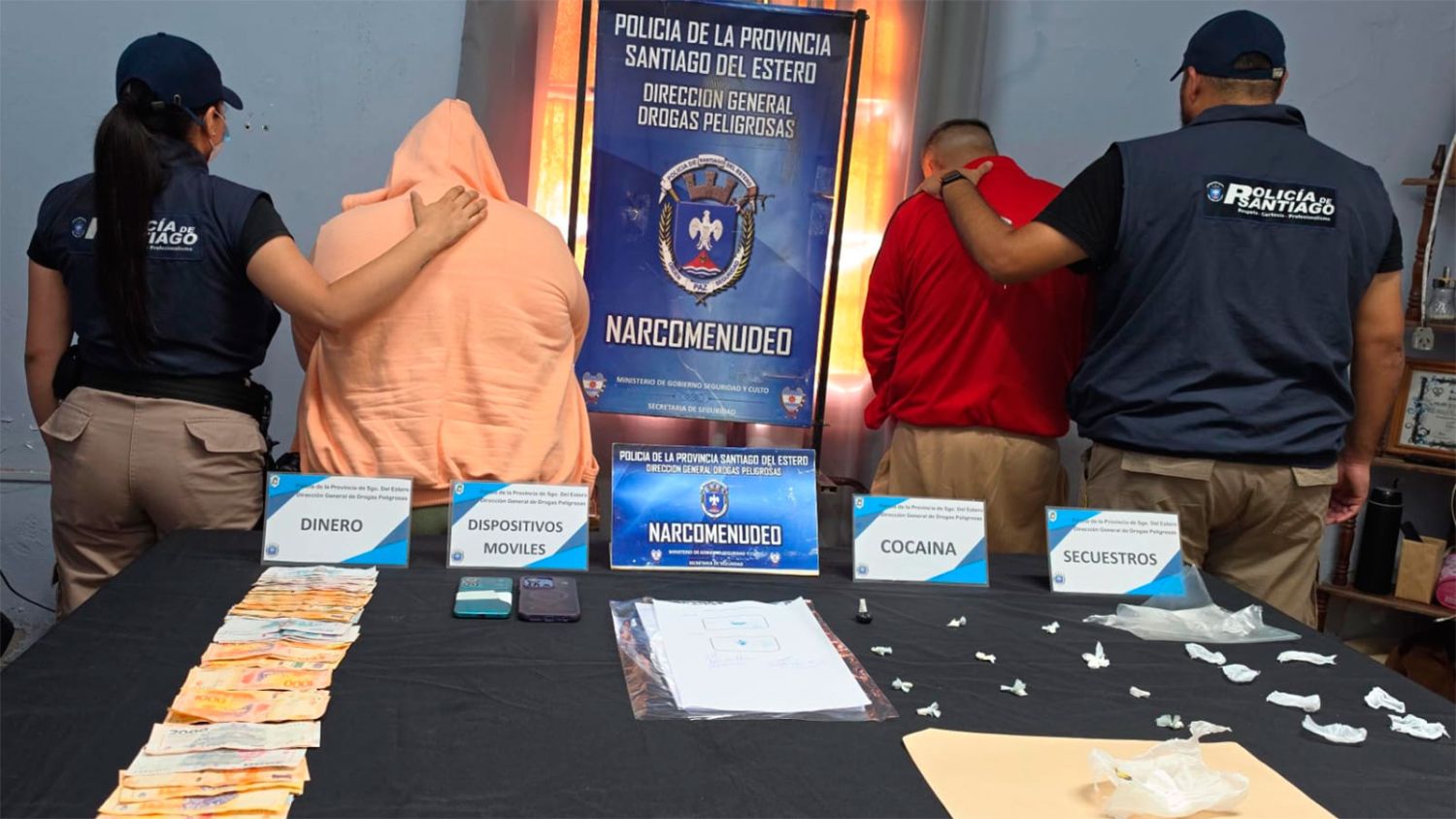 Un importante operativo antidrogas permitió desbaratar un presunto punto de venta de estupefacientes en la ciudad de Termas de Río Hondo, donde fueron detenidas dos personas y se secuestró cocaína, dinero y diversos elementos vinculados a la comercialización de sustancias prohibidas.