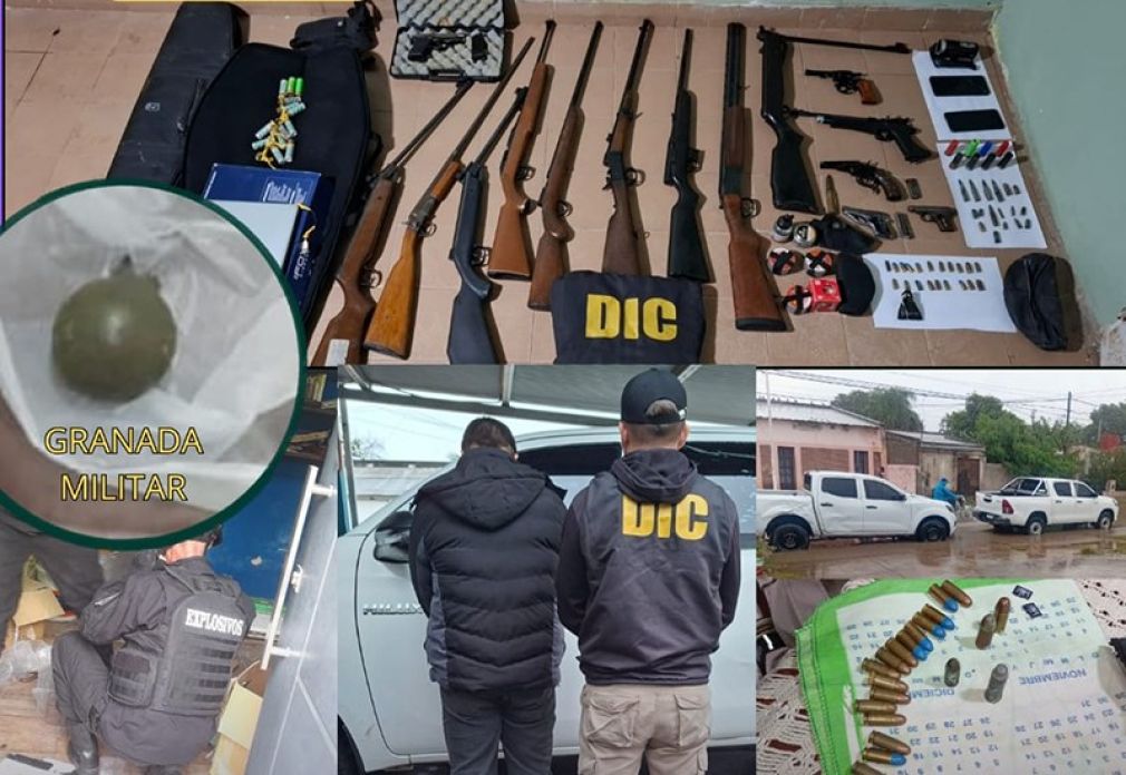 Efectivos de la División Investigaciones Complejas de Villa Ángela y Sáenz Peña han desmantelado un arsenal y hallado una granada activa en un allanamiento derivado de amenazas contra un colegio local.