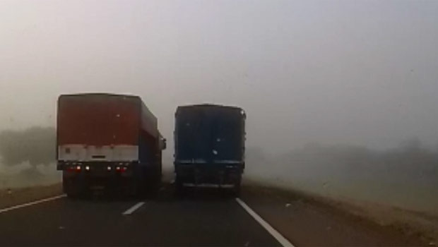 Sucedió en el tramo que une Mailín con Lugones de la Ruta Nacional Nº 34. Un viajante capturó con su celular como un camión casi embiste de frente a un colectivo por adelantarse con la vista reducida a cero por la densa neblina.