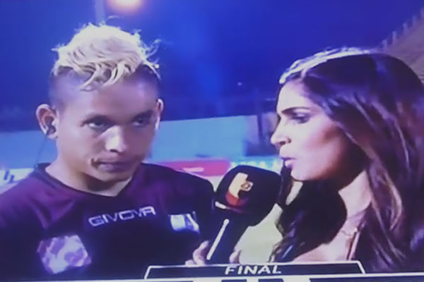 Ocurrió en el fútbol venezolano tras un partido clasificatorio a la Sudamericana, el jugador Aquiles Ocanto daba una entrevista cuando fue sorprendido desde atrás.