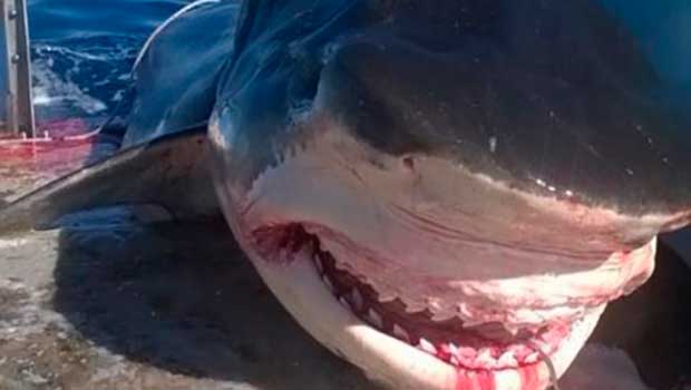 Fue atrapado en el momento en que se tragaba a otro tiburón.
