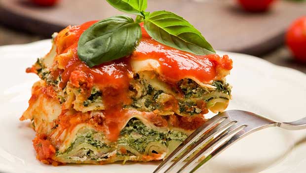 Una exquisita versión vegetariana de la tradicional receta italiana. Este plato típico de origen griego/italiano se sirve generalmente con salsas bolognesa y salsa blanca.