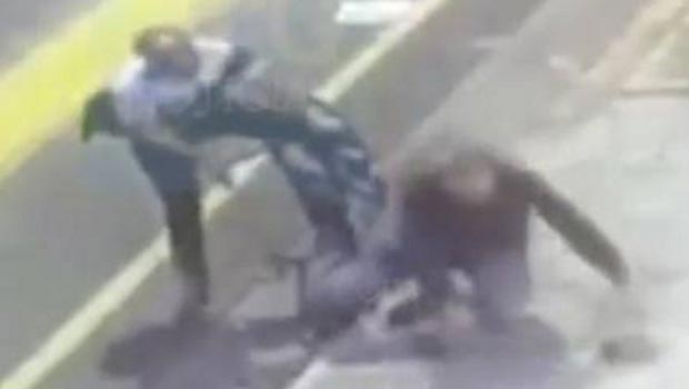 El famoso periodista cayó al piso y, tras recriminarle al sujeto que lo chocó por su pobre reacción, fue ayudado por él y por una mujer que pasaba por el lugar para volver a ponerse de pie. El video hace furor en las redes sociales.