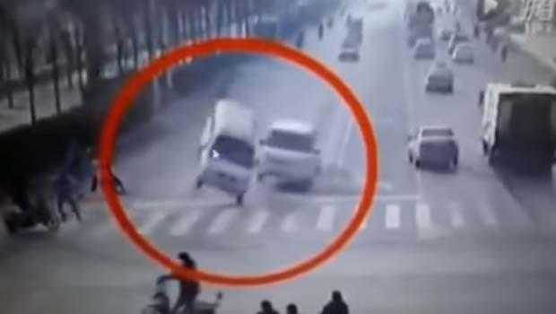 En el famoso sitio Weibo comentaron que un cable de acero se enrolló en los rodillos de un vehículo de limpieza (se ve al lado derecho de la pantalla) y al estirarse habría levantado por los aires a los otros dos coches.