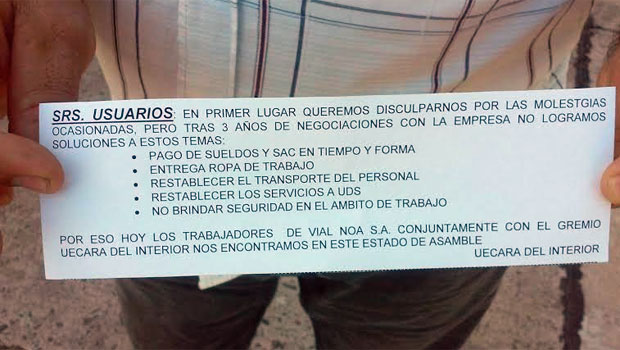 Los 150 trabajadores se sienten amenazados ante la falta de pago, ya que son los sostenes de 150 familias a lo largo del corredor que tiene puesto de cobro en Palo Negro, Fernández, La Florida, Molle Yaco y Cabeza de Buey.