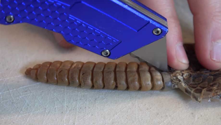 ¿De qué se trata? Nada menos que de descubrir qué es lo que produce el sonido característico de una víbora cascabel. Para hacerlo, aparentemente Daniel y Lincoln compraron por eBay la cola de uno de estos exóticos bichos muertos, con su cascabel y todo. Tras compararla con una cascabel viva del zoológico de Phoenix, tomaron parte de su cola, la diseccionaron con una trincheta y subieron el clip de todo el proceso a su canal.