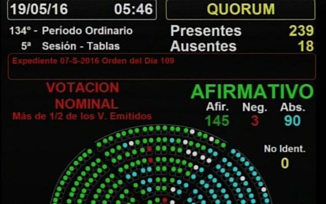 Cerca de las 6 de la mañana comenzó el cierre de exposiciones en la Cámara de diputados en el marco del debate por la ley de cepo laboral. Finalmente, la iniciativa fue aprobada con 145 votos a favor, 3 en contra y 90 abstenciones.