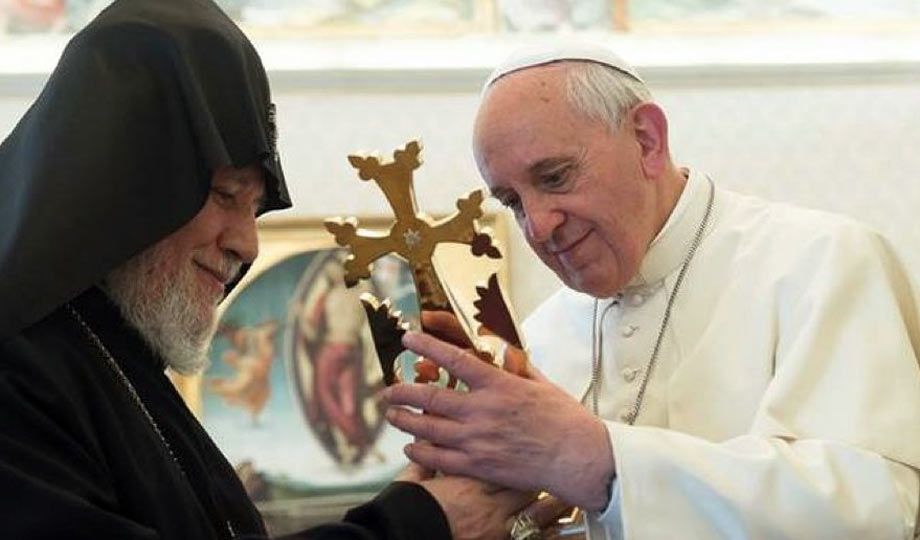 En un clima de gran emotividad, marcado por el silencio, los coros y el triste cantar de flautas tradicionales armenias, de madera de damasco, el Pontífice rezó de pie junto a Karekin II, Patriarca de la Iglesia armenia, frente a la llama eterna custodiada adentro del impactante monumento de basalto gris. Dominaba el lugar la cima nevada del imponente Monte Ararat, que queda en Turquía y donde se cree que recaló el Arca de Noé, visible a lo lejos.