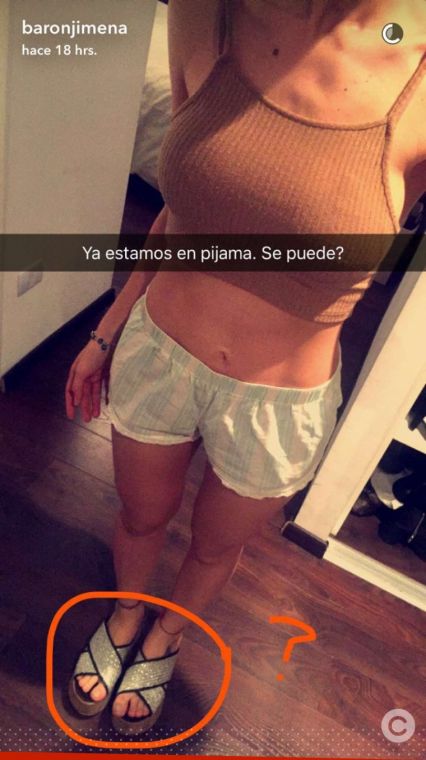 Muy activa en Snapchat, Barón sorprendió a sus seguidores con el look de entrecasa... ¡y con el que se va a la cama! "Ya estamos en pijama. ¿Se puede?", escribió Jimena en el snap que publicó y se la ve con un top, un short liviano y zapatos con plataformas. ¿El horario que eligió para ponerse la ropa de cama? Tempranito, las siete de la tarde.