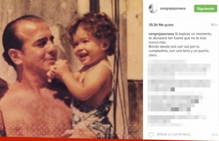"Si bajaras un momento, te abrazaría tan fuerte que no te irías nunca más. Brindo desde acá con vos por tu cumpleaños, con una birra y un pucho, claro", escribió la China en Instagram junto a una foto de su infancia junto a su padre.