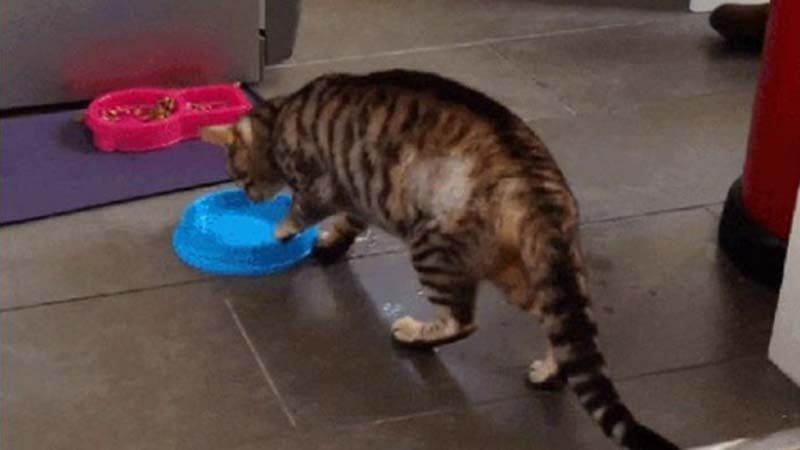 -Porque esperan que el agua se mueva. Esto sucede con los animales que beben regularmente de una canilla, por ende, esperarán que el agua "tome vida", aunque eso requiera darle un empujón al plato.
