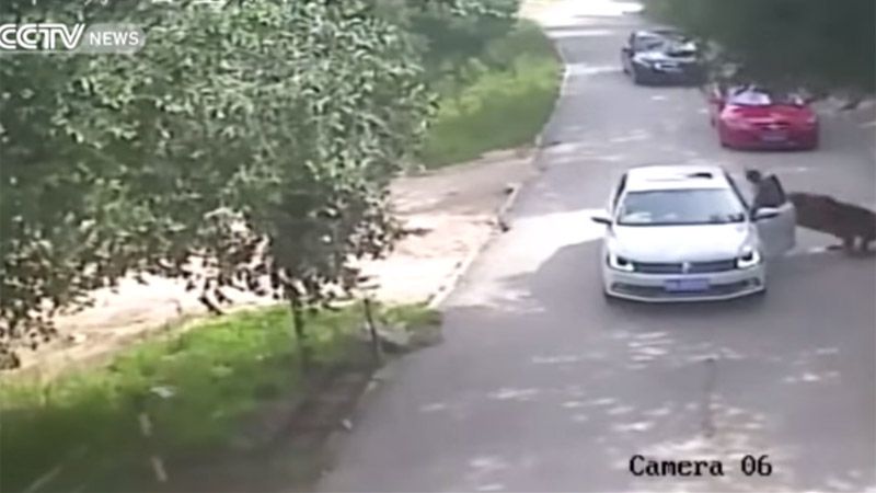 Al parecer, una de las mujeres discutió con el conductor y salió del coche para ponerse al volante y, en el momento en el que trata de volver a entrar en el vehículo, un tigre se lanzó sobre ella y se la llevó arrastrando, según los vídeos del suceso publicados por medios chinos.