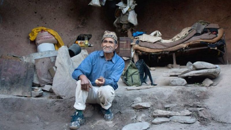 Está solo, pero no desamparado. Vive aislado, pero no incomunicado. Una vez al mes baja a la villa para cobrar una pensión, que cambia por comestibles y algunas herramientas. Dentro de la cueva armó una estructura con troncos de chalchal que sostienen improvisados estantes donde guarda cachivaches, como le gusta decir.
