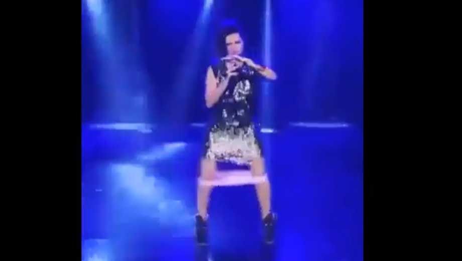 La cantante española Barei tuvo un accidente hot durante la gran final del Festival Internacional Europeo cuando en pleno baile se le cayó la bombacha.
