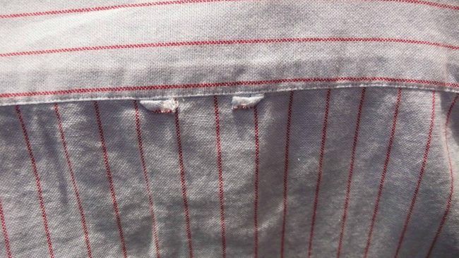 Generalmente lo tienen las camisas de los hombres, sin embargo también se encuentran en las de las mujeres. Este accesorio fue puesto ahí por los marinos de EE.UU. en la década de los 50 y su función era evitar que su camisa se arrugara, con tan sólo colgarlas evitaban eso. Los marinos no tenían tiempo de plancharlas cuando estaban de viaje y necesitaban estar bien presentados frente a sus superiores.