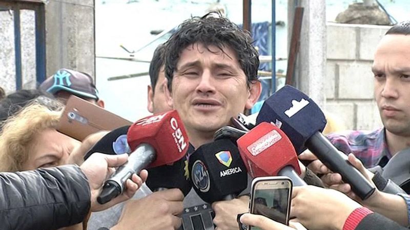 Disfónico, con un fino hilo de voz, y ahogado en sus propias lágrimas, el carnicero Daniel Oyarzún enfrentó las cámaras que lo esperaban en su casa luego de ser beneficiado por la Justicia con una "excarcelación extraordinaria".