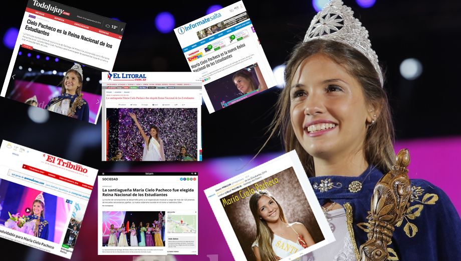 La joven santiagueña fue elegida Reina Nacional de los Estudiantes 2016 en la noche del viernes. Su imagen con la corona se vio en los principales portales.