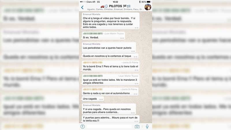 Y hoy le tocó el turno a la viralización de un supuesto chat grupal de WhatsApp entre varios pilotos de TC comentando la filmación de sus colegas y armando una estrategia de silencio.