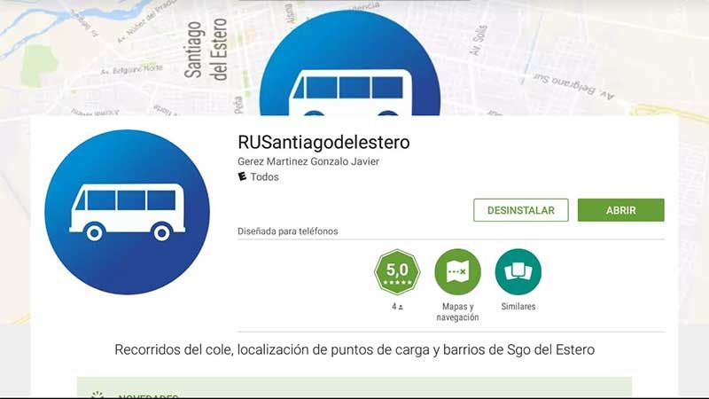 RUSantiago es una aplicación desarrollada por un joven santiagueño que brinda información sobre los recorridos de las líneas de colectivos urbanos y los puntos de carga de la tarjeta.