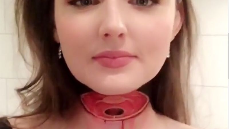 En otra publicación explicó que consiguió el efecto dibujando un óvalo rojo a mitad de su cuello y cubriendo de negro la parte superior hasta su barbilla.