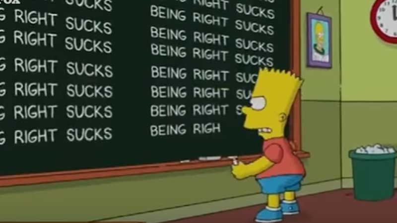 En el reciente episodio se observó el acostumbrado intro de la serie y a Bart Simpsons escribiendo en el pizarrón de su aula “Being right sucks” (“Tener razón apesta”), esto en referencia a su acierto en las elecciones presidenciales.