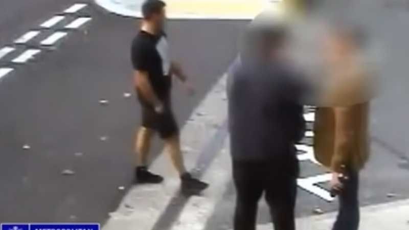 Un sujeto llega y se para delante de dos hombres que charlaban. Segundos después le aplica un fuerte golpe de puño y noqueó a uno.
