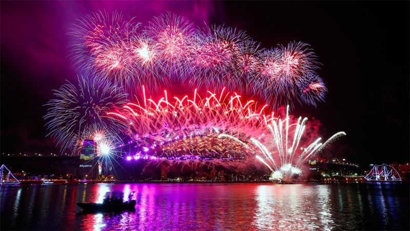 En la ciudad de Sydney, Australia, los festejos por la llegada del nuevo año también comenzaron con un espectacular show de luces. Más de un millón de personas acudieron al puerto y se mostraron entusiasmadas cuando fuegos artificiales en color púrpura cayeron desde el puente del puerto al ritmo de la canción "Purple Rain", de Prince.