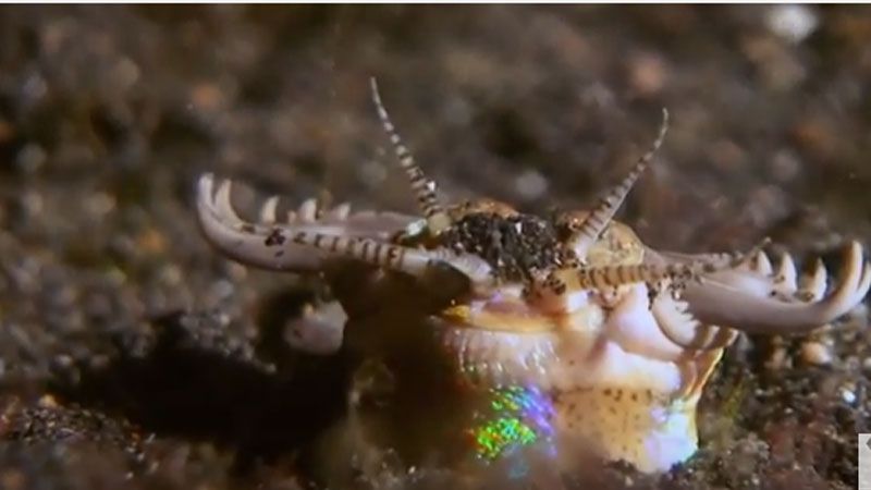 Bajo el nombre científico de Eunice aphroditois, este gusano poliqueto, es decir, gusano con cuerpo segmentado en anillos, es un depredador acuático que habita en el fondo del océano. Allí pasa la mayor parte de su vida, enterrado bajo la arena a profundidades de entre 10 a 40 m, donde muestra sólo sus cinco antenas en busca de presas.