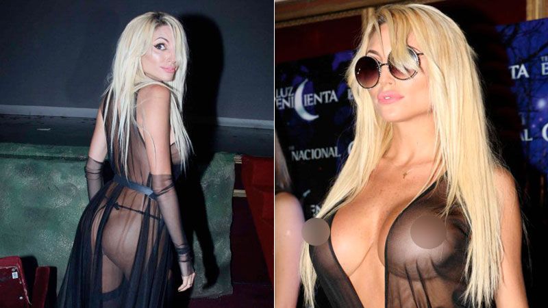 Con un vestido largo, totalmente transperente, sin ropa interior en la parte de arriba y con una micro tanga negra, la exuberante rubia lució sus curvas sin pudores y acaparó la atención de los presentes, incluidos los fotográfos, claro.