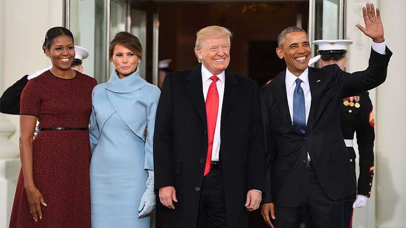 El presidente electo de EE.UU., Donald Trump, entró en la Casa Blanca junto con su esposa, Melania, para reunirse con Barack y Michelle Obama antes de partir todos al Capitolio para la ceremonia de transmisión de mando.