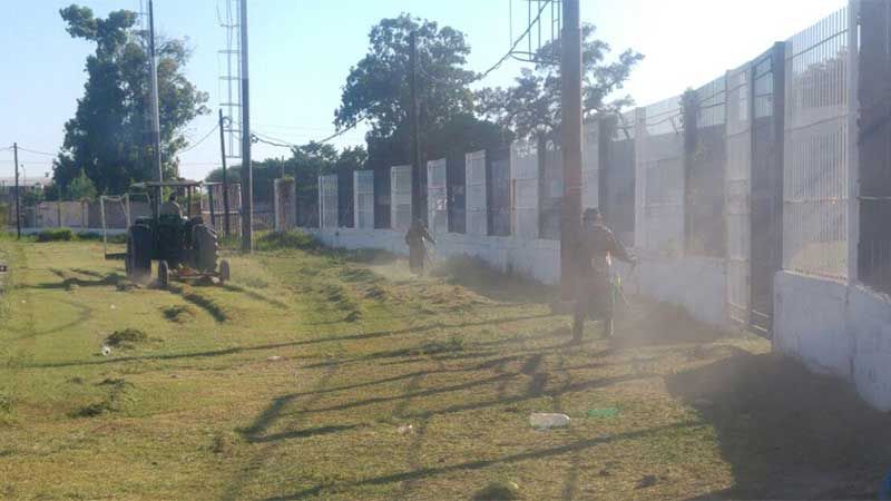 En vísperas del Festival Nacional de la Salamanca, uno de los más importantes del país, personal de la Dirección de Parques y Paseos de la Secretaría de Servicios Públicos realizó tareas de mantenimiento en el césped del campo de juego del Club Atlético Sarmiento.