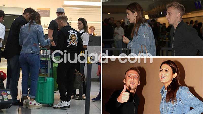 El cantante y la actriz de Abracadabra salieron el domingo de Ezeiza en su primer viaje como pareja oficial.