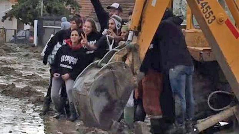 Como ocurrió en 2013, cuando también generó polémica el uso de pecheras de la agrupación mientras se auxiliaba a los inundados en La Plata, los jóvenes acudieron a la zona de desastre -varios con palas- y fueron increpados por vecinos cuando se sacaban fotos junto a una retroexcavadora.
