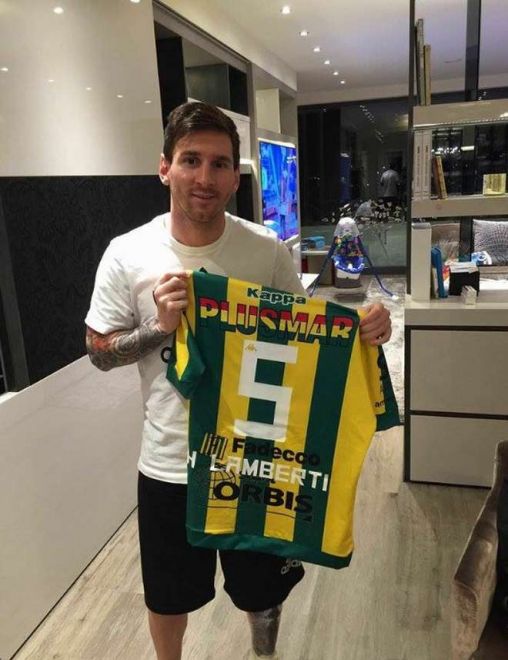 La 5 de Lamberti: Sí, aunque parezca mentira, Leo conserva la camiseta del volante central de Aldosivi. ¿Por qué? Porque fue un regalo que le envió el futbolista argentino por intermedio de un amigo en común: el tatuador de Messi.