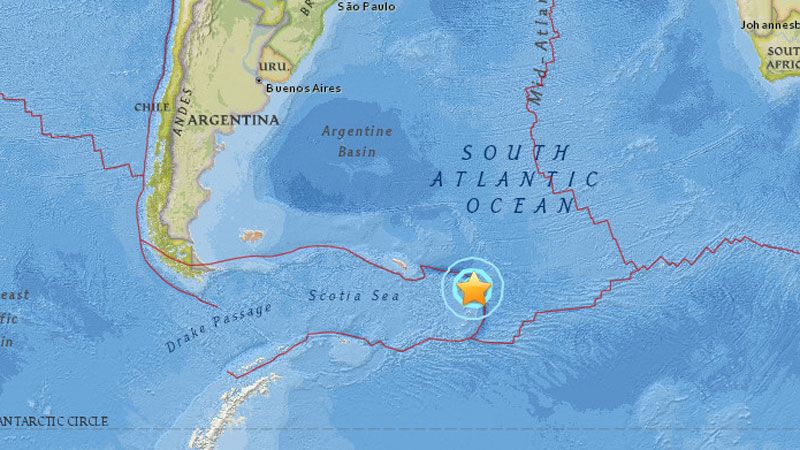 Este miércoles a las 20.23 se produjo un terremoto de magnitud 6,8 en la región de las islas Sandwich del Sur, según informó el Servicio Geológico de EE.UU. (USGS, por sus siglas en inglés).