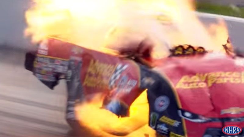 El auto de la piloto Courtney Force explotó cuando corría picadas a 500 km/h. Quedó envuelta en fuego. Mirá el video.