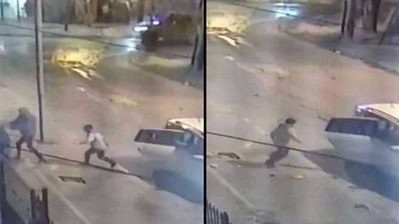 Mientras el delincuente que estaba sentado en el asiento del acompañante sacaba un arma, otros dos se bajaron de la parte trasera del vehículo con el fin de agarrar al chico y llevarlo con ellos.