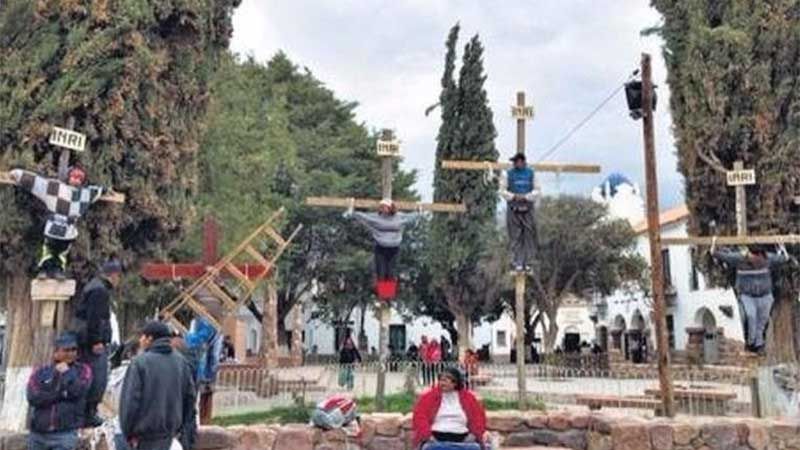 El acto se realizó en la plaza Sargento Gómez de Humahuaca, y allí tuvieron lugar las “crucifixiones”. La convocatoria impulsada por Olmedo fue apoyada por las escuelas de Humahuaca y por el Ministerio de Educación de Jujuy. Ese día se suspendieron las clases para que los chicos pudieran ir a la marcha.