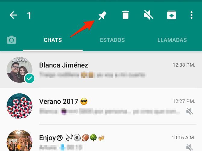 1. Mantener el dedo presionado sobre el chat que se quiere destacar.