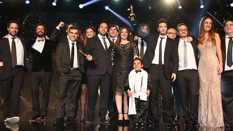 Jorge Lanata, ganador del Martín Fiero de Oro 2016, entregó el premio. Todo el equipo y actores subió al escenario.