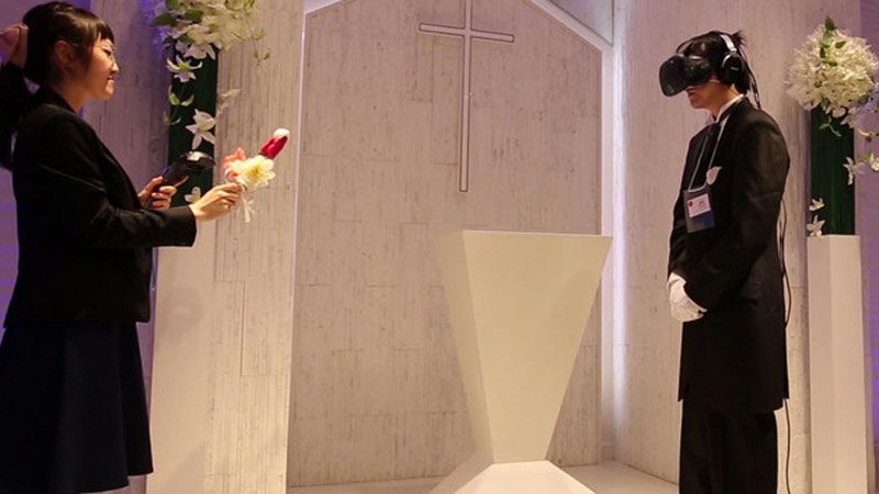 "La ceremonia me pareció bastante completa. Los efectos visuales se correspondían con mi gusto", dijo Iwasa Ryo, un 'novio' que participó este viernes en una de estas bodas en Tokio, afirmó: .